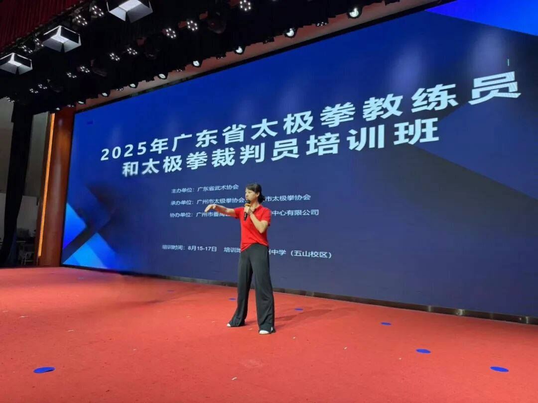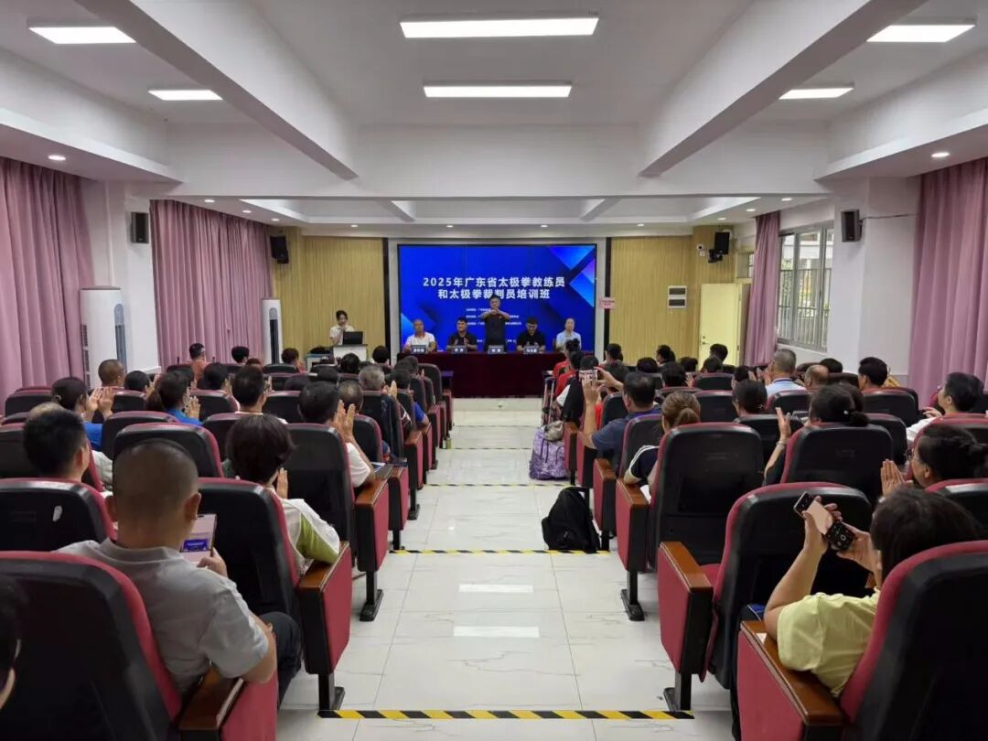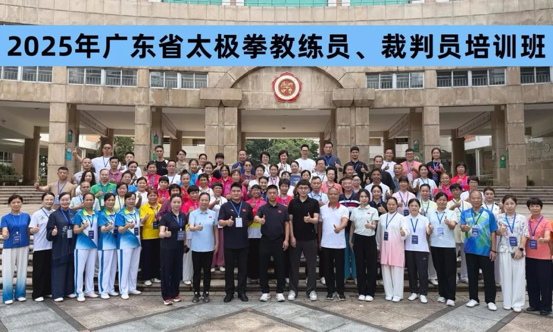 由广东省武术协会主办,广州市太极拳协会、佛山市太极拳协会承办的“2025年广东省太极拳教练员、裁判员培训班(广州站)”于2025年8月15日至17日在广州中学成功举办。本次培训共有来自全省各地83名学员参加,本次培训班旨在进一步提升我省太极拳项目教练员与裁判员的专业素养和执裁执教能力,为推动我省太极拳运动的规范化、科学化发展打下坚实基础。