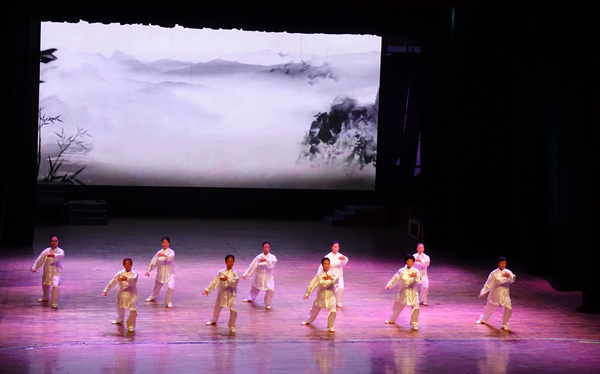 上午九时,我会教练员们集体展示了国家新编套路太极(八法五步),永年广府武氏太极拳研究会广东分会表演了武氏太极拳37式,在两个暖场节目之后,主持人隆重介绍了钟振山老师及其弟子王艳萍、李建民、邓震洲等,协会主席杨少华、永久名誉主席侯维道、副主席苏华祥、梁炽强、陈瑞兰、韩巧云、周谦等协会领导在主席台与嘉宾们亲切握手并合影留念。