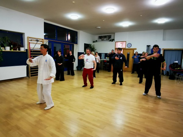 中华太极站苏华祥、苏健明两位老师于2020年1月17至29日首次在春节期间,被德国卡尔滕基兴市的康复与健身体育协会邀请到德国进行太极拳教学,来参加这次短训班学习的全部都是德国太极拳爱好者,其中有公务员、学者、护士和专门从事太极拳教学的老师。参加学习人数达60人次。我们这次的教学课程是推广八法五步,健身气功,帮助学员提高学习24式、42式拳32式剑和六合八法拳。