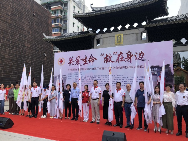 中国红十字会成立于1904年,是中国唯一合法的全国红十字会。目前正开展“红十字应急救护进社区”的活动。在活动现场,红十字志愿者向市民宣传和指导市民学习心肺复苏,我们也加入到宣传和指导的行列中。我们的工作单位广州市第一人民医院也派出医生进行义诊。
