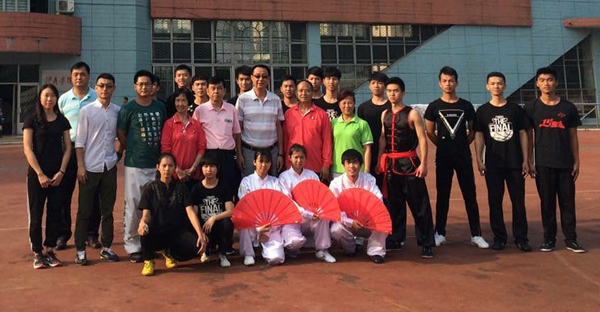 我会常务副主席李俊萍,副秘书长梁炽强、刘勇出席了仪式。二师体院院长李建军、党委书记李俊标出席了仪式并作了热情洋溢的讲话。二师太极拳队负责人晏骏老师和队员们热情地接待了我会领导,并进行了精彩的武术和太极扇表演。